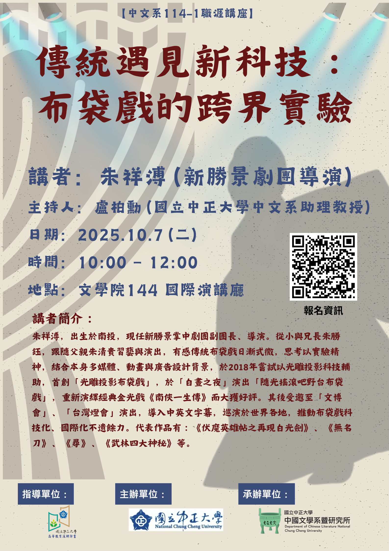 10/7職涯講座:傳統遇見新科技:布袋戲的跨界實驗