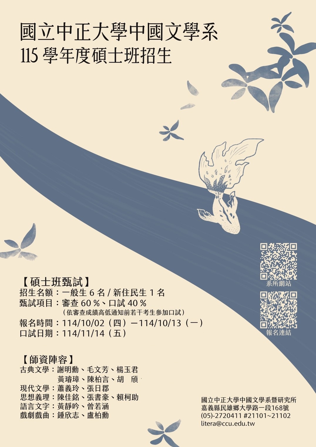 招生資訊:https://exams.ccu.edu.tw/p/403-1032-2830.php?Lang=zh-tw
