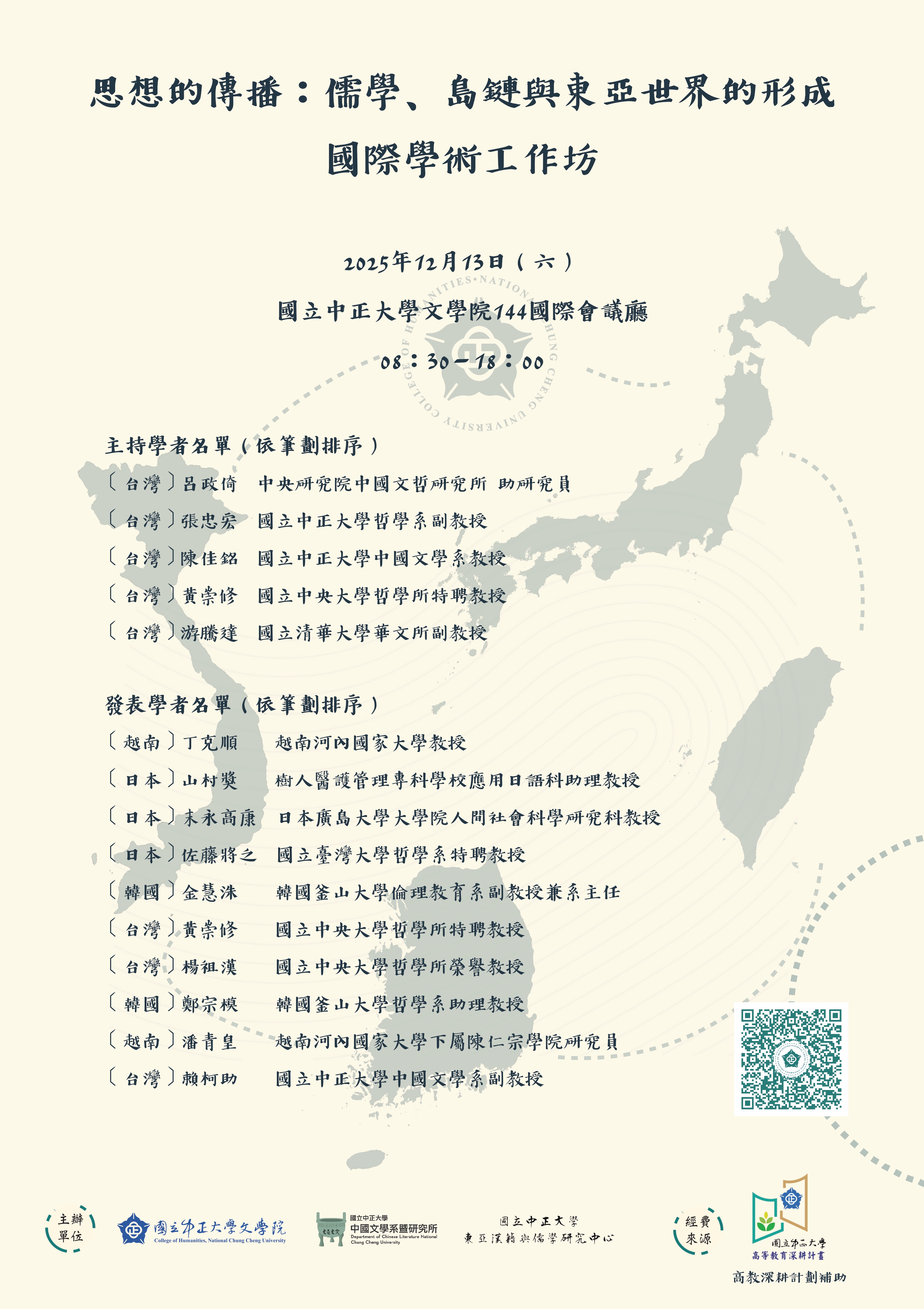 【主辦單位】國立中正大學文學院、國立中正大學中國文學系、國立中正大學東亞漢籍與儒學研究中心